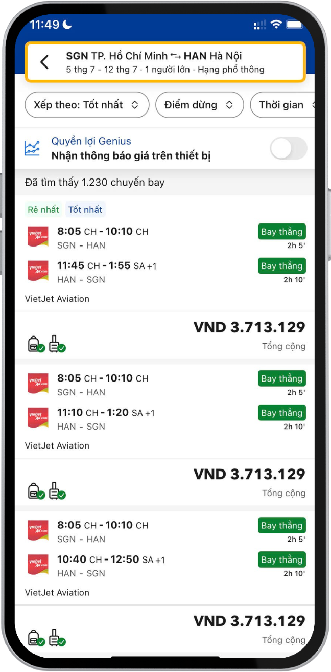 - Không cần lo lắng vì biết rằng bạn đang có được giá vé máy bay tốt nhất có thể