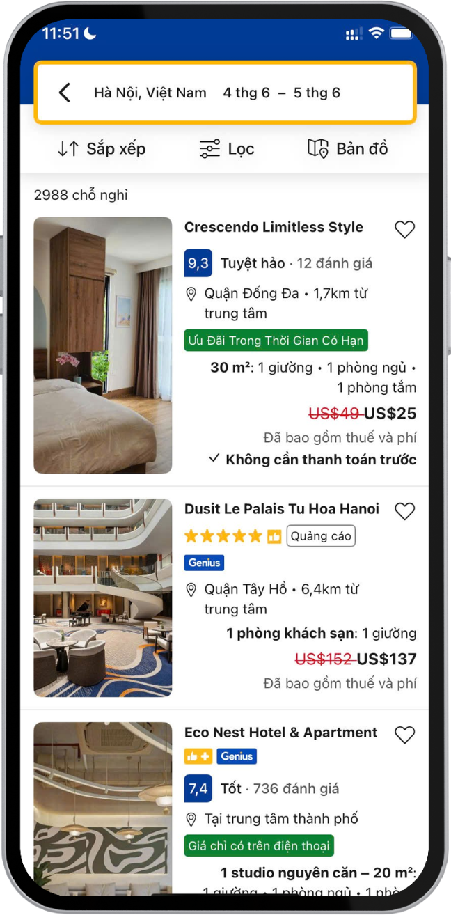 - Tự tin tìm cơ sở lưu trú và đặt phòng bằng cách xem đánh giá, hình ảnh và thông tin địa phương từ người dùng