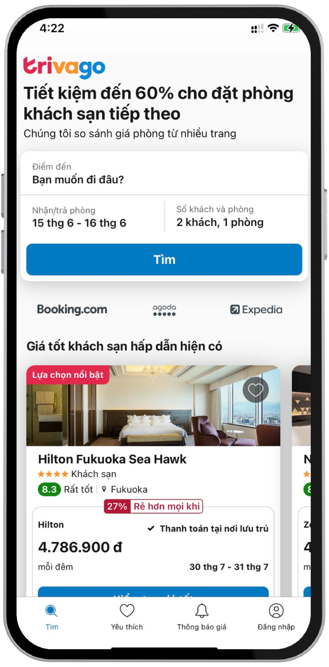 - Thỏa mãn niềm đam mê du lịch với hàng triệu điểm đến cho kỳ nghỉ giá rẻ