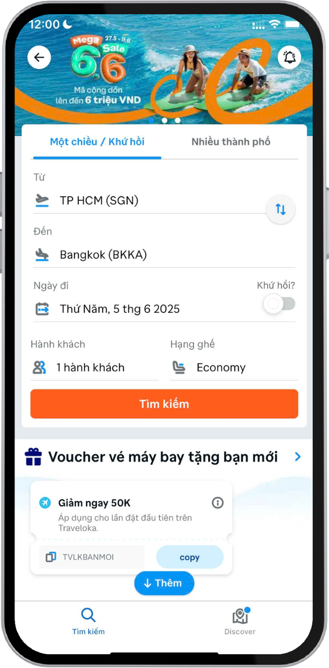 Đặt vé máy bay một cách liền mạch trên Agoda, dù là bay nội địa hay quốc tế. Tìm các ưu đãi vé máy bay từ hơn 200 hãng hàng không trên toàn thế giới với vô số lựa chọn. Công cụ tìm kiếm độc đáo của chúng tôi so sánh các chuyến bay và giá theo thời gian thực để bạn có thể đặt ưu đãi tốt nhất ngay khi giá giảm.
