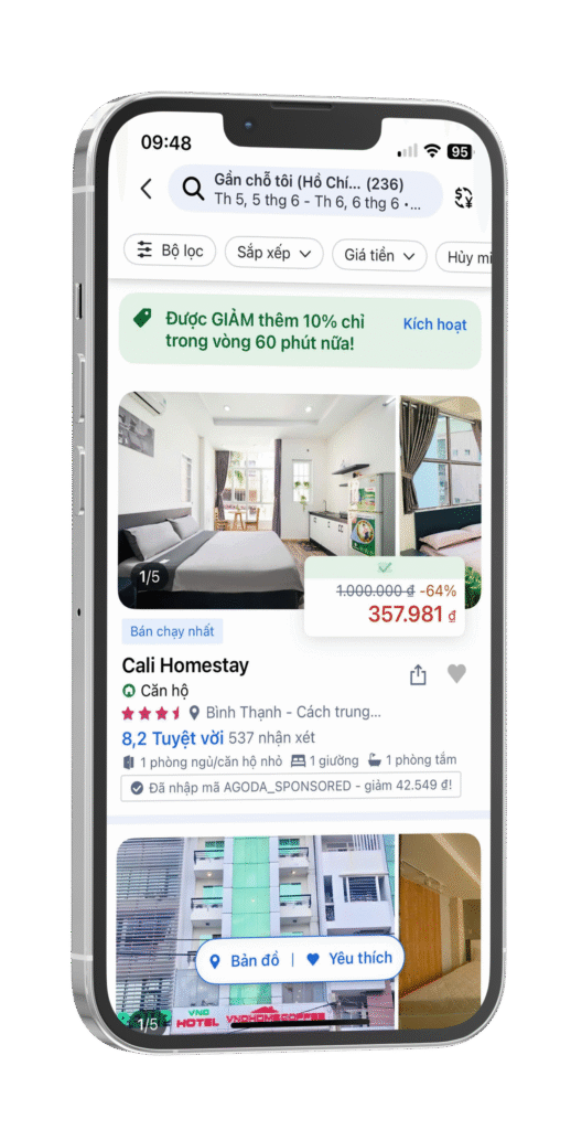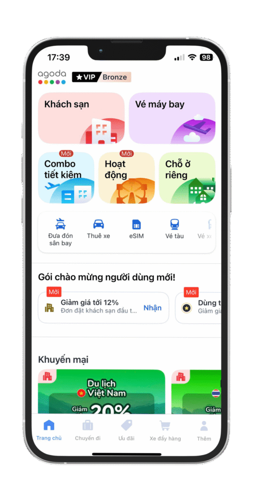 Rong chơi bốn phương với giá ""yêu thương"" khi biết rằng bạn có thể tiết kiệm tới 80% với một số ưu đãi dành cho thành viên, ưu đãi phút chót và nhiều ưu đãi hấp dẫn khác! Agoda là công cụ lập kế hoạch kỳ nghỉ tuyệt vời nhất để giúp bạn tiết kiệm cho chuyến đi tiếp theo của mình. Đặt vé máy bay. Đặt khách sạn. Đặt kỳ nghỉ tuyệt vời tiếp theo của bạn với các ưu đãi độc quyền.