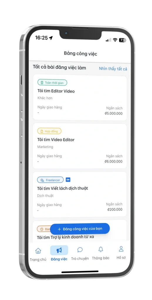 - Thanh toán an toàn: Sau khi hoàn thành dự án và bạn hài lòng với sản phẩm, khoản thanh toán mới được chuyển đến freelancer thông qua ứng dụng.