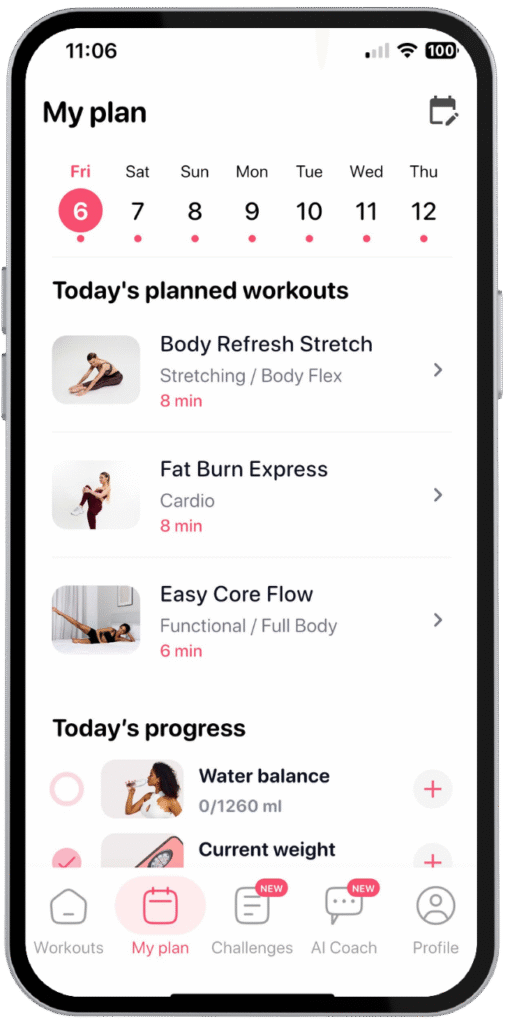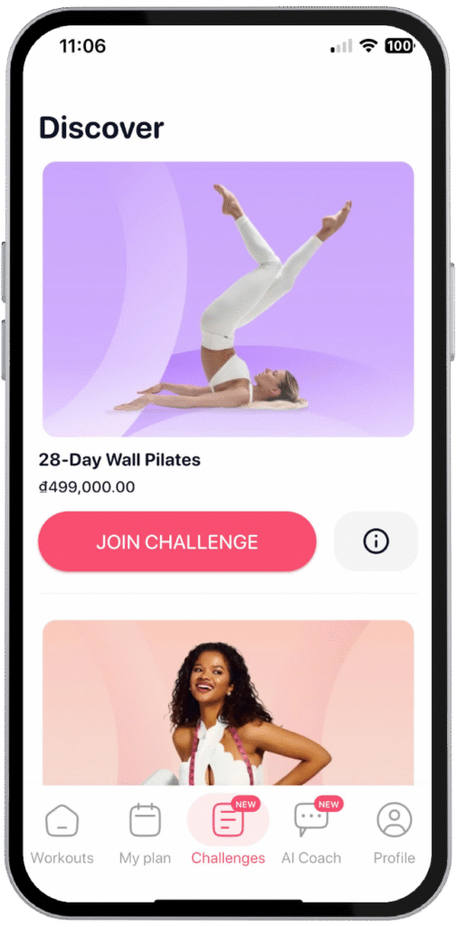 • Bài tập đa dạng theo vùng cơ thể và cấp độ.