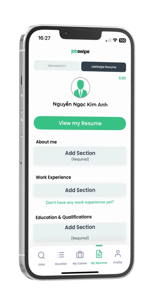 Đăng ký xin việc thật dễ dàng với JobSwipe - tính năng tìm kiếm việc làm thông minh của chúng tôi trở nên thông minh hơn mỗi khi bạn sử dụng, để giúp bạn tìm được công việc tiếp theo ngay hôm nay.