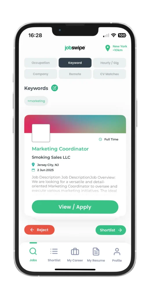 → JobSwipe có thể phát hiện vị trí của bạn và quét các công việc gần bạn nhất, với các cập nhật tuyển dụng và cơ hội việc làm ngay trên điện thoại của bạn.