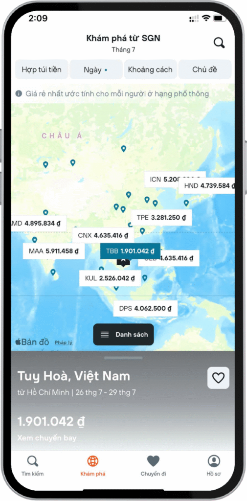 Tìm kiếm theo ngân sách của bạn: Chỉ có $300 để tiêu? KAYAK Explore sẽ hiển thị cho bạn các lựa chọn chuyến bay với mọi mức ngân sách.