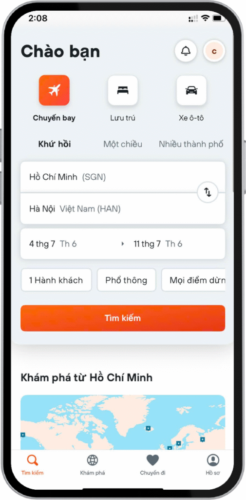 Tìm kiếm hàng trăm trang web chuyến bay một lần.