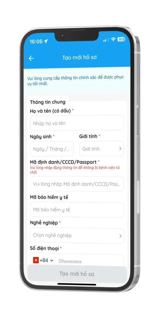 - Tạo hồ sơ bệnh nhân