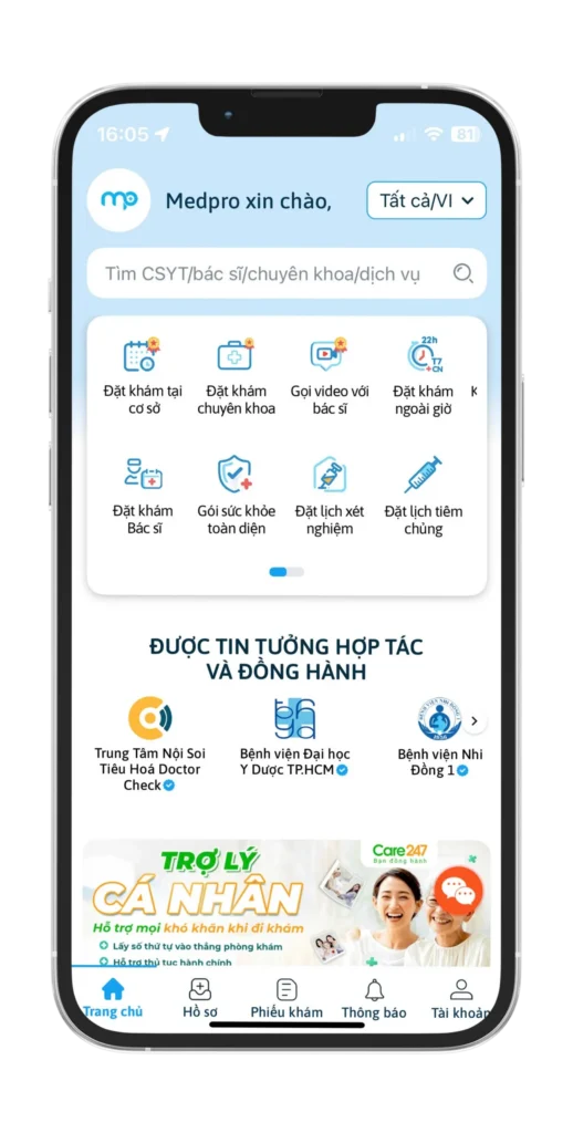 Hoàn toàn trực tuyến ở mọi lúc mọi nơi mà không cần phải đến bệnh viện để xếp hàng và chờ đợi.