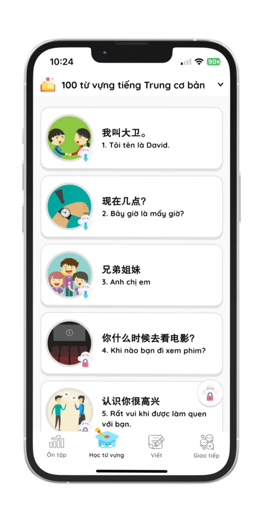 Mochi Chinese - Ứng dụng học từ vựng tiếng Trung thú vị nhất, giúp bạn ghi nhớ 1000 từ vựng chỉ trong vòng 1 tháng.