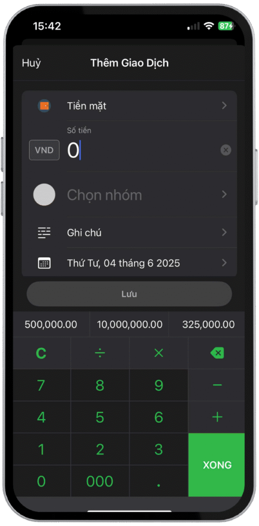 - Ghi chép thu/chi theo từng ví và hạng mục