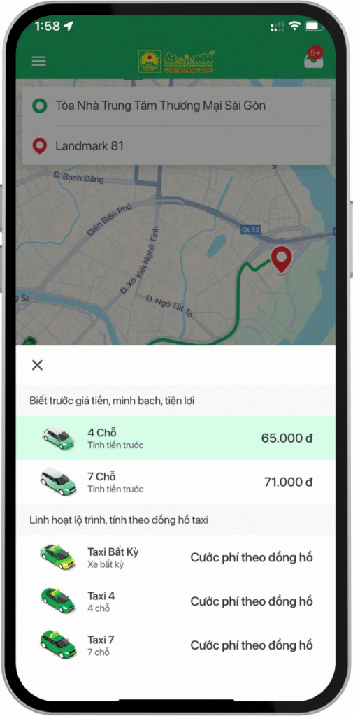 • Thanh toán linh hoạt: Hỗ trợ nhiều hình thức thanh toán như tiền mặt, thẻ ngân hàng, thẻ Mai Linh, QR Voucher.