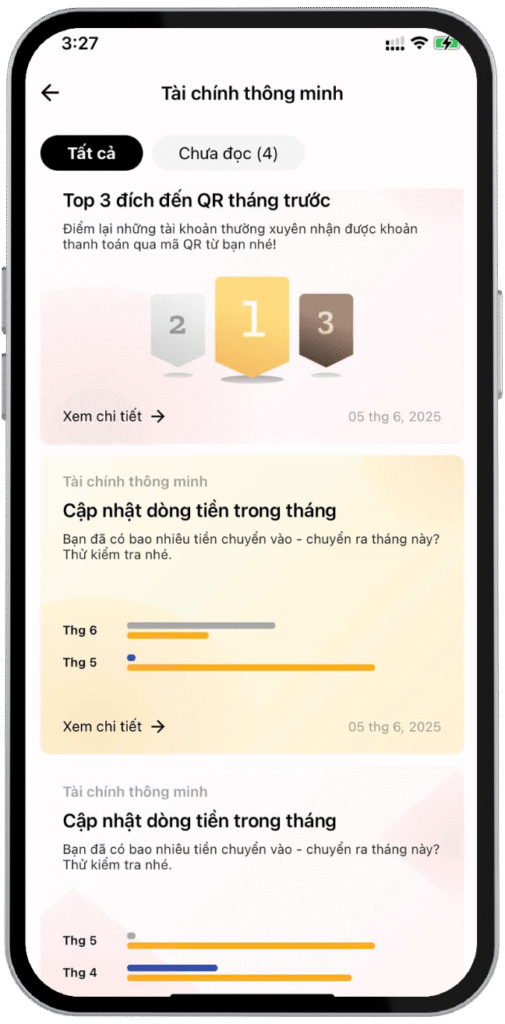 Tìm hiểu thói quen chi tiêu và giúp bạn lên kế hoạch tiết kiệm qua các giao dịch hàng ngày.
