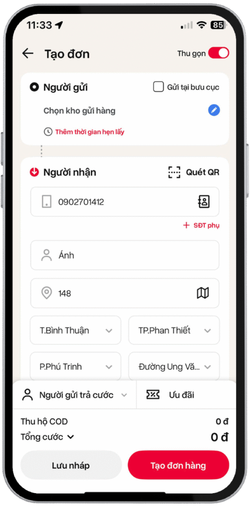 • Quản lý đơn hàng: Tạo và theo dõi đơn giao hàng dễ dàng
