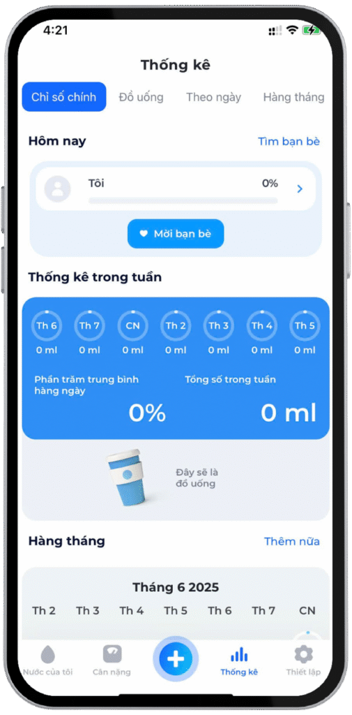 - Theo dõi lượng nước qua biểu đồ thống kê trực quan.