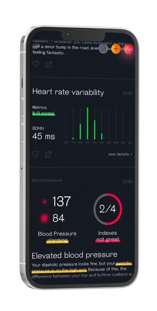Welltory chỉ đo HRV và xác định nhịp tim. Chúng tôi không thể đo huyết áp hay bất kỳ chỉ số sự sống nào khác (mức oxy) bằng camera điện thoại. Tuy nhiên, bạn có thể tự thêm thông tin chỉ số huyết áp vào app. Chúng tôi sử dụng chúng trong “My Data” nếu bạn lưu các chỉ số quan trọng này vào trình theo dõi hoạt động của mình.